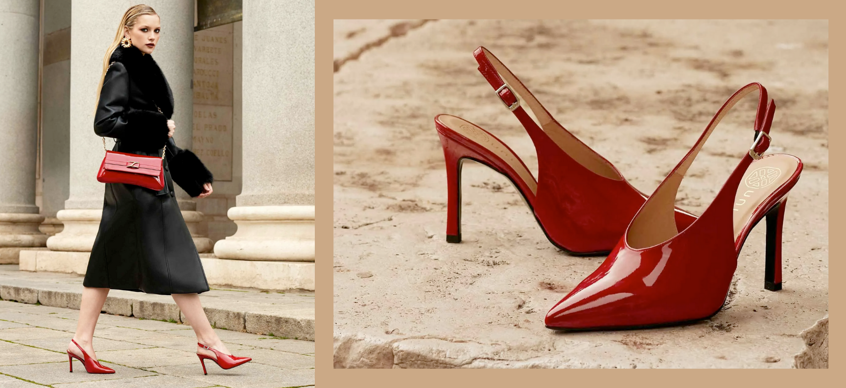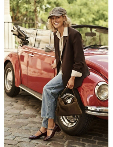 Babies à pointe carrée fabriquées en cuir verni. Réglables sur le cou-de-pied avec boucle en métal. Talons confortables de 5,5 cm doublés en ton sur ton. Semelle extérieure en caoutchouc légère, flexible et antidérapante. Les babies d’Unisa sont devenues un classique.