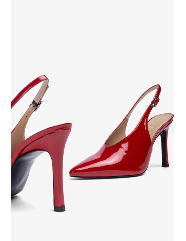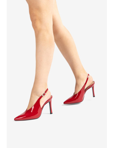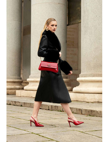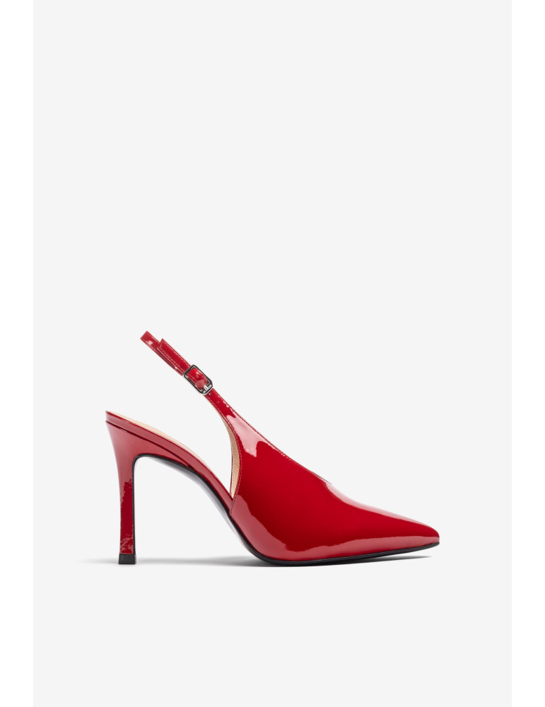 LATINO_F24_NTO_PA Escarpins à pointe carrée en cuir. Détail de pointe et talon en cuir verni contrasté. Bride en daim sur le cou-de-pied avec boucle en métal. Talon large de 5,5 cm de haut. Semelle en caoutchouc légère, flexible et antidérapante. Le meilleur choix pour cet hiver.