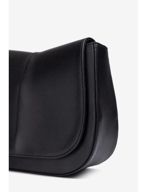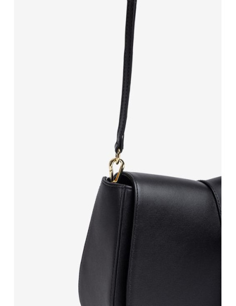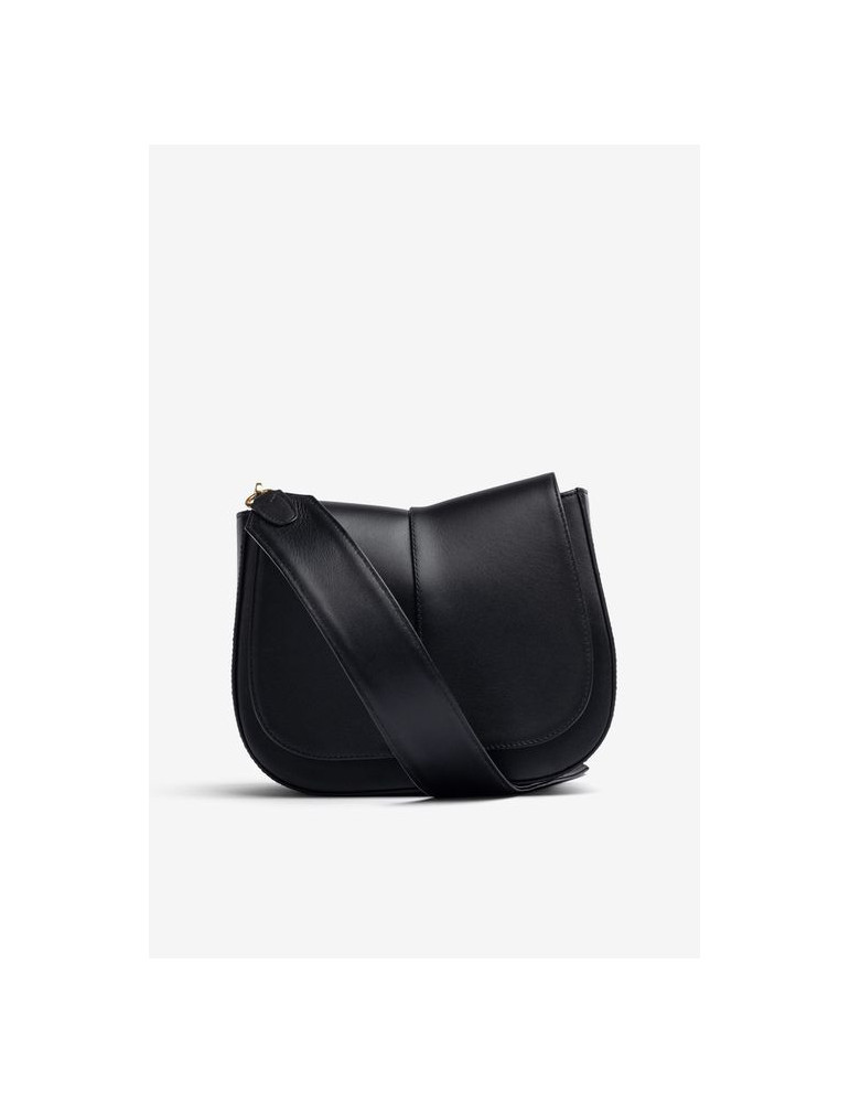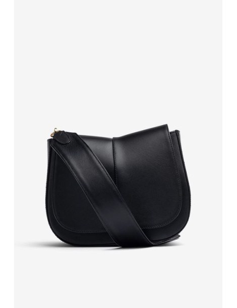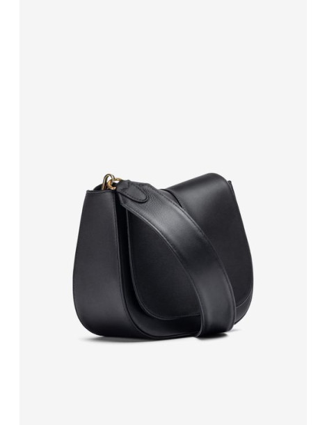Sac de taille moyenne en cuir. Bandoulière courte et large en cuir et bandoulière croisée à l’intérieur, toutes deux amovibles. Poche intérieure et fermoir aimanté. Dimensions : 21 cm x 26 cm x 10 cm
