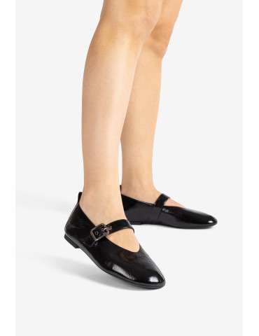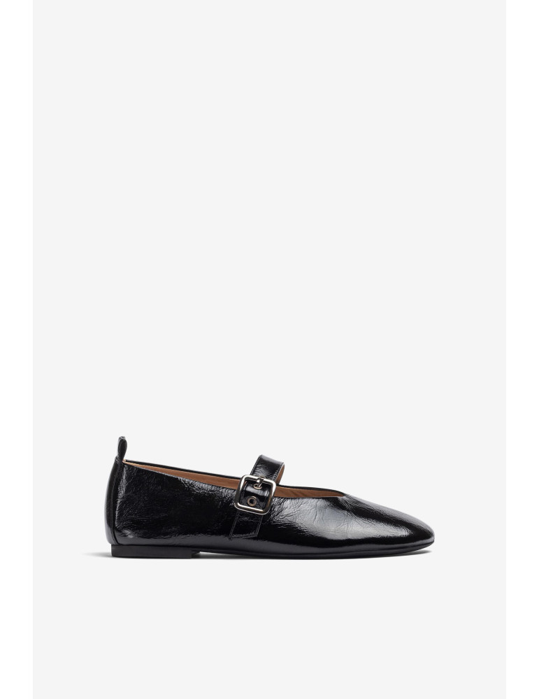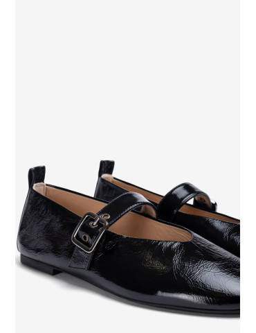 Ballerines à pointe ronde fabriquées en cuir verni froncé. Bride réglable sur le cou-de-pied avec boucle en métal. Semelle extérieure en caoutchouc légère, flexible et antidérapante. Des babies classiques adaptées aux dernières tendances.