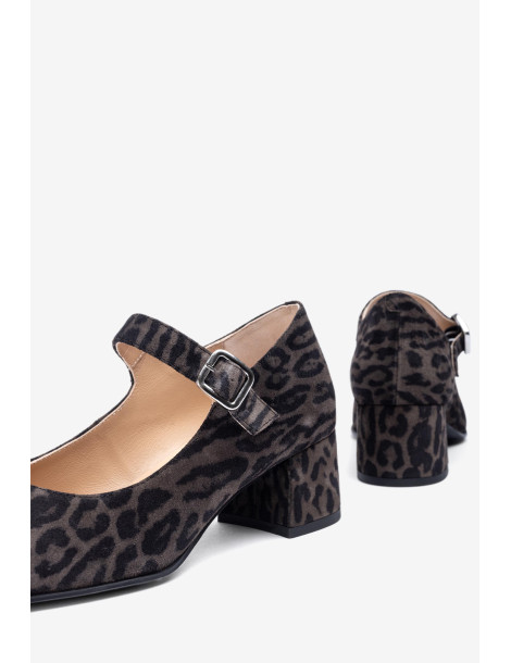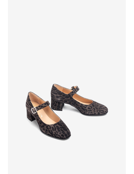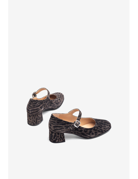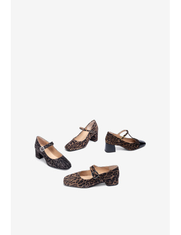 CULVER_ZUL FANGO Babies à pointe carrée fabriquées en daim imprimé léopard. Petit talon de 2 cm doublé en ton sur ton. Réglables par une boucle métallique sur le cou-de-pied. Semelle extérieure en caoutchouc légère, flexible et antidérapante. Disponibles en plusieurs couleurs et matières. Laquelle est votre préférée ?