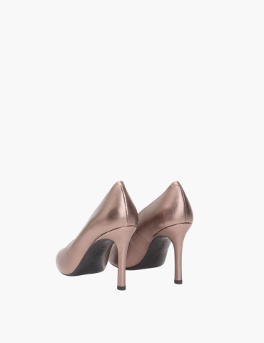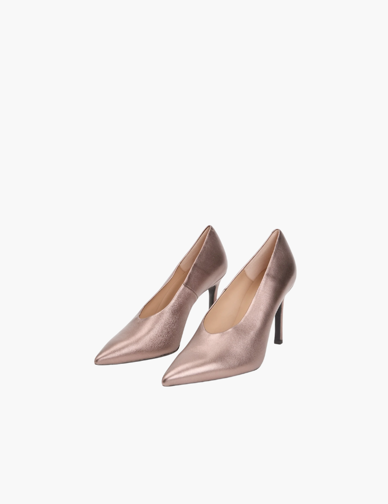 Escarpins à pointe fine fabriqués en cuir metallisé Talon haut de 9,5 cm ton sur ton. Semelle extérieure en caoutchouc légère, flexible et antidérapante. Un design moderne, contemporain et très féminin